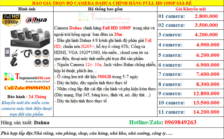 Trọn Bộ Camera Dahua Giá Rẻ 1.0Mp, 2.0Mp, 2K, 4K: link
