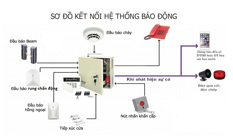 Giúp bộ phận quản lý phụ trách bật tắt trung tâm báo động từ xa khi xảy ra báo động loa hú đèn chớp